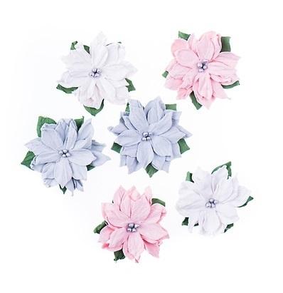 Realistycznie wyglądające, przestrzenne kwiaty gwiazdy betlejemskiej w pastelowych barwach. Ręcznie modelowane z papieru morwowego (mulberry). Element zimowej kolekcji Frosty Pastels, w której znajdziesz również naklejki z brokatem, kształty z papieru, tasiemki i pompony w dopasowanej estetyce i kolorystyce.
