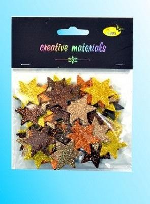 Elementy z mikrogumy brokatowej : Gwiazdki, wielkość ca. 3,5 cm miks kolorów ciepłych.Kod : DS5210-GZ