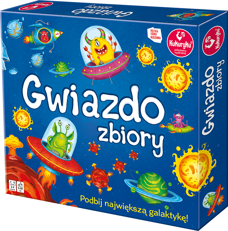 Jesteś w odległej galaktyce, gdzie wcielasz się w kosmitę, który chce zdobyć nowe terytoria. Latając swym statkiem kosmicznym, starasz się podbić jak największą konstelację. Gwiazdozbiory to gra, która uczy tworzenia zbiorów, ćwiczy pamięć i koncentrację, rozwija logiczne myślenie. Gra zawiera: - 48 tafelków - 4 karty graczy - 16 statków kosmicznych - 16 podstawek - 16 żetonów z planetami - instrukcję