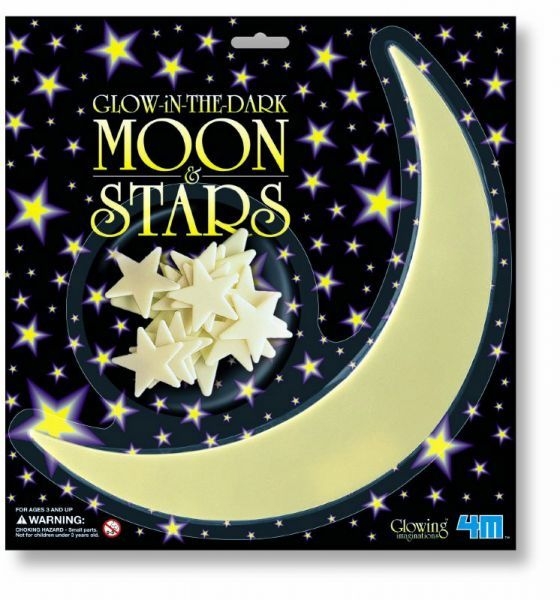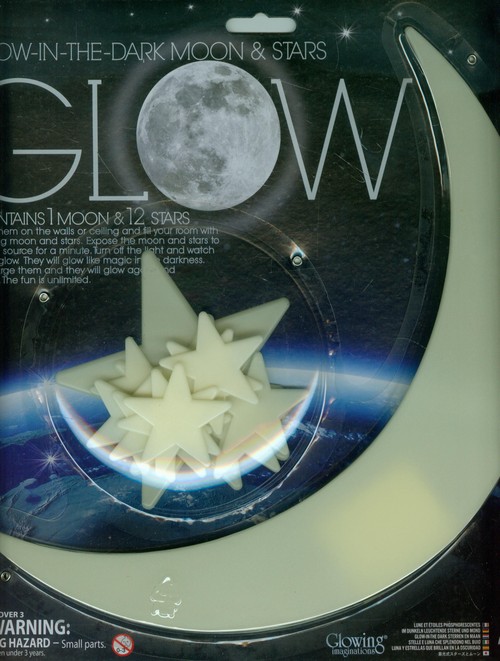 Stwórz dekorację w formie wspaniałego, świecącego w ciemności Nieba z gwiazdami i Księżycem. To niepowtarzalna i inspirująca ozdoba sufitu w dziecięcym pokoju.ZAWARTOŚĆ: 10 małych gwiazdek świecących w ciemności 1 duży księżyc taśma dwustronnie klejąca do umocowania dekoracji.