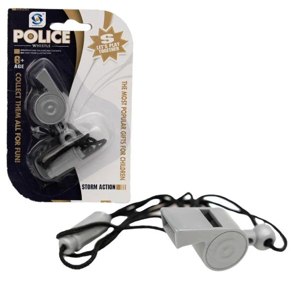 Gwizdek policyjny ze sznurkiem Pakowanie display: 12 szt. Wymiary opakowania: 9 x 2 x 14 cm Długość gwizdka: 3.5 cm Wiek: 6+
