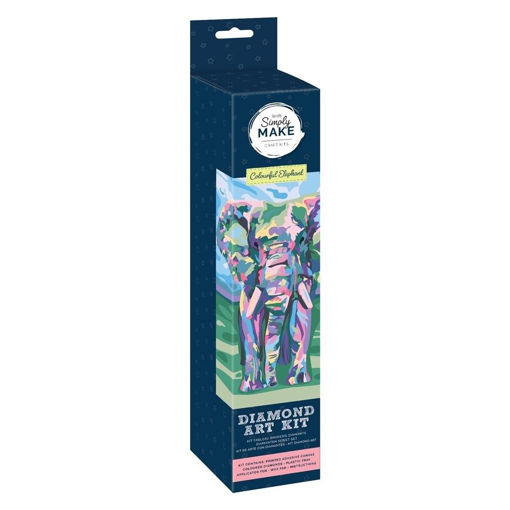 Zestaw do stworzenia mozaiki diamentowej z wizerunkiem kolorowego słonia.