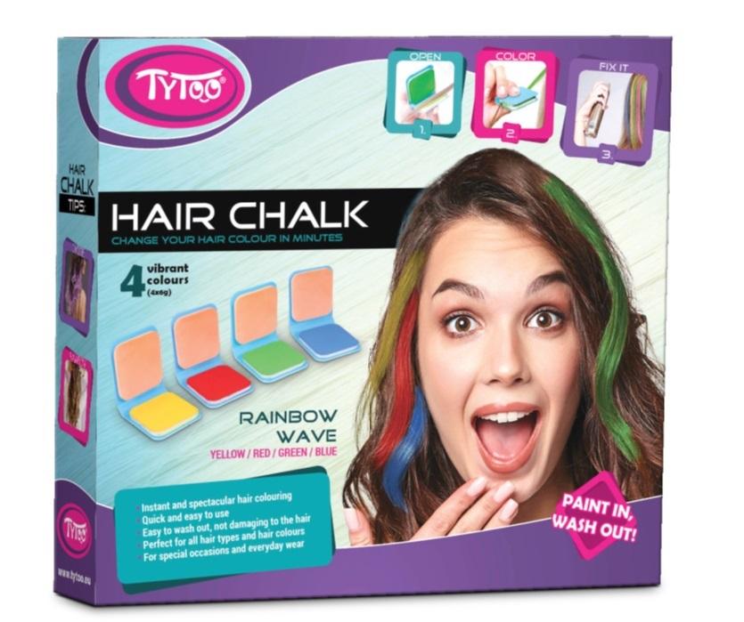Zmieniaj swój wizerunek każdego dnia! Zestaw zawiera 4 niezwykłe kredy do włosów, dzięki którym dokonasz zmiany w dosłownie kilka chwil. Zestaw zawiera kolory: żółty, czerwony, zielony i niebieski.