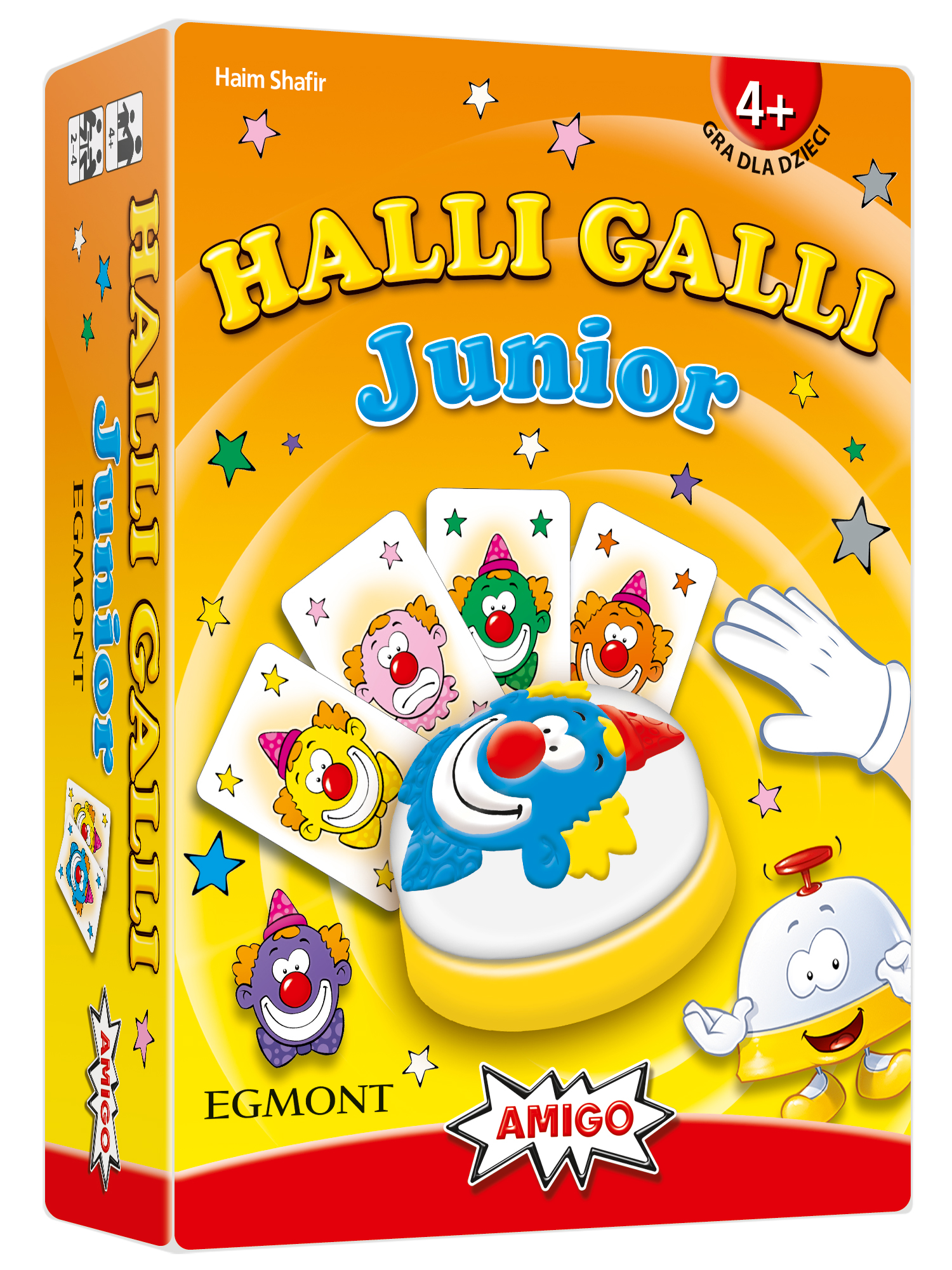 Szybka, dynamiczna i zabawna. Wygrasz ją dzięki spostrzegawczości szybkości i porównywaniu kolorowych klaunów. Tylko uważaj na smutnych klaunów! W "Halli Galli Junior" dzieci mogą grać z rodzicami, a też samodzielnie nawet w gronie 4-latków!