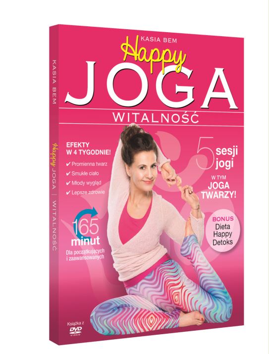 Happy Joga. Witalność” to pierwsza w Polsce tak bogata propozycja – aż 5 programów ćwiczeń na jednym DVD – w tym rewelacyjna, odmładzająca Joga Twarzy! Kasia Bem podpowiada jak ułożyć z nich 4-tygodniowy program odnowy ciała i duszy. „Na płycie znajdziesz 5 sesji jogi odpowiednich dla osób na każdym poziomie zaawansowania. Zależało mi, żebyś miała wybór i mogła dostosować ćwiczenia do swoich potrzeb, umiejętności oraz możliwości czasowych – mówi Kasia. Ci asany, które poprawią Twoją wydolność, kondycję i sylwetkę. Nauczę Cię oddychać i medytować, byś mogła szybko podnieść poziom sił witalnych i uspokoić umysł. Pokażę Ci, jak się relaksować. Dostaniesz też kompletny program oczyszczający organizm wraz z nowymi przepisami diety Happy Detoks.