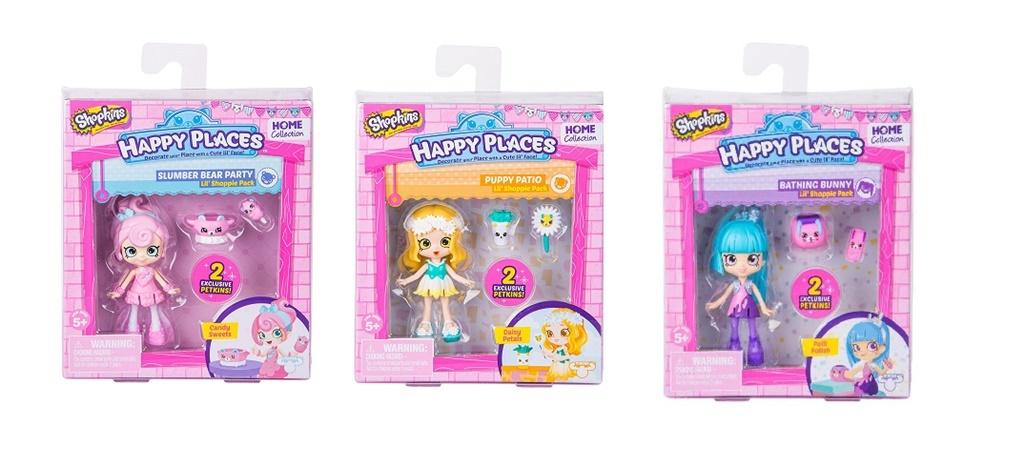 Shopkins Happy Places - Zestaw Startowy, to różne zestawy tematyczne, w któych znajdziesz Laleczkę Shoppies i 13 figurek Petkins oraz 2 klocki, które można połączyć ze sobą i postawić na nich figurki. Zbierz wszystkie mebelki i akcesoria Petkins, które zamieszkają z laleczką Shoppies w domku - stwórz własne Happy Places!