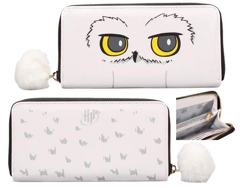 Portfel Harry Potter - Hedwiga to stylowe i praktyczne akcesorium stworzone z myślą o fanach magicznego świata. Utrzymana w pastelowej tonacji, zachwyca ilustracją sowy Hedwigi w stylu kreskówkowym na przedniej części, podczas gdy tylna część ozdobiona jest kultowym logo Harry Potter oraz delikatnym motywem piór w odcieniach szarości. Wykonana jest z połączenia nylonu i eko-skóry (PU leather), posiada zamek błyskawiczny zakończony puszystym pomponem, który podkreśla wyjątkowy charakter produktu. Wnętrze kryje dwie główne przegrody, oddzieloną kieszonkę na monety, cztery przegródki na karty oraz obszerne miejsce na banknoty lub paragony - wszystko to wykończone subtelnie nadrukowaną podszewką ozdobioną powtarzającym się logo.