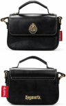 Torebka na ramię z motywem Hogwartu od Half Moon Bay to stylowy dodatek, który łączy miłość do świata magii z elegancją. Wykonana jest z czarnego materiału imitującego skórę, zdobi ją herb Hogwartu w subtelnej złotej tonacji, a kontrastujący uchwyt w odcieniu złota podkreśla szlachetny charakter całego projektu. Wygodny pasek na ramię i kompaktowy rozmiar sprawiają, że torebka idealnie sprawdzi się jako praktyczne, a jednocześnie pełne magii akcesorium na co dzień. Dzięki wymiarom: 17 cm wysokości, 19 cm szerokości i 7 cm głębokości jest przestrzeń na niezbędne przedmioty, a jednocześnie torebka zachowuje zgrabną formę. Produkt oficjalnie licencjonowany przez markę Half Moon Bay. Doskonale wpisuje się w styl fanów literatury z uniwersum Harrego Pottera, co czyni torebkę idealnym prezentem dla każdego Potterheada.