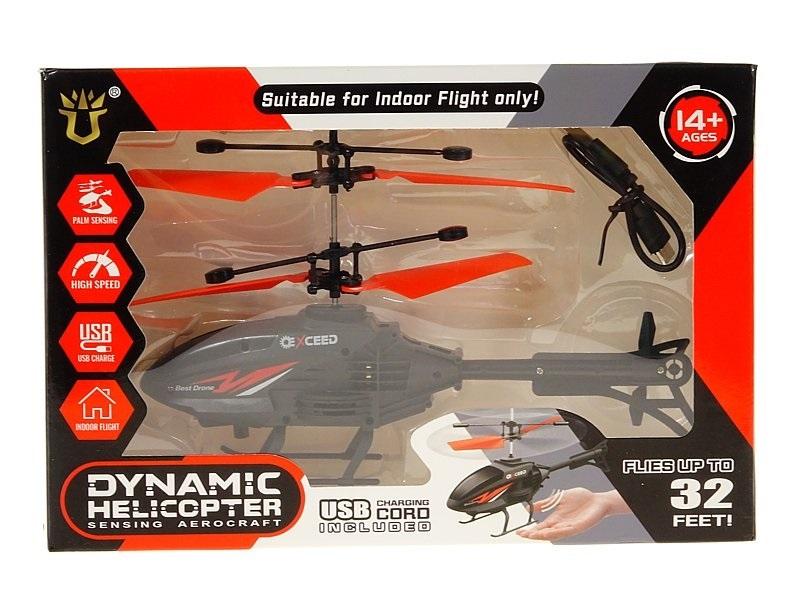 helikopter na podczerwień sterowany dłonią, z czujnikiem zbliżeniowym (góra, dół); ładowarka USB, ze światłem; stabilny lot; 18,5x11x4cm, W/B