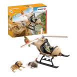 Śmigłowiec do ratowania zwierząt (42476). Mały hipopotam jest w niebezpieczeństwie! Lew zbliża się wielkimi krokami, ale na szczęście strażnik jest już w helikopterze i śpieszy na pomoc! W nowym helikopterze ratunkowym dla zwierząt z serii Schleich(R) Wild Life strażnik może pomóc małemu hipopotamkowi, który utkwił w głębokim wąwozie, i uratować go przed lwem. Na wciągarce spuszcza więc z helikoptera siatkę transportową. Maluch w ostatniej chwili wdrapuje się na nią i strażnik w mgnieniu oka odlatuje z nim tuż przed nosem lwa. Akcja ratunkowa szczęśliwie zakończona! Strażnik przylatuje z małym hipopotamem do Toma i Teda, aby zbadać zwierzątko w ciężarówce ratunkowej dla zwierząt.