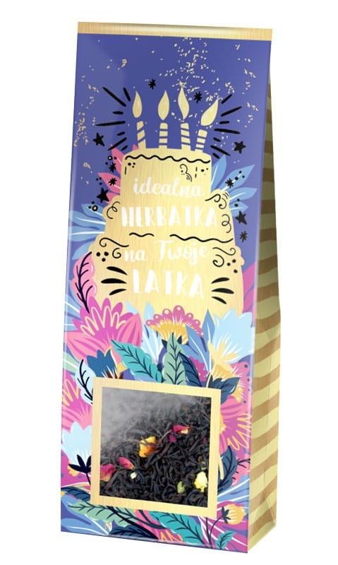 Herbata Kukartka ""idealna herbatka na Twoje latka"" Herbata idealna herbatka na Twoje latka to pomysł na drobny upominek, zwłaszcza w komplecie z kubkiem Kukartka. 50 gram najwyższej jakości herbaty opakowane jest w piękny, zdobiony metaliczną folią kartonik. Idealna na jesienne i zimowe wieczory. Cechy szczególne: - zdobione opakowanie - teksty Kukartka - bardzo dobrej jakości herbata - 50 g - Wymiary 18,5 x 7 x 4 cm, - smak: Poziomkowo- Waniliowe Marzenie-