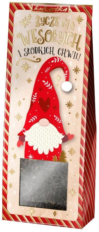 Herbata na prezent ""Boże Narodzenie"" to wspaniały pomysł na drobny świąteczny upominek . 50 gram najwyższej jakości herbaty opakowane jest w piękny, zdobiony metaliczną folią kartonik. Cechy szczególne 1 opakowania: - wyjątkowe kolorowe, opakowanie - super jakość herbata - 50 gr - Wymiary 18,5 x 7 x 4 cm
