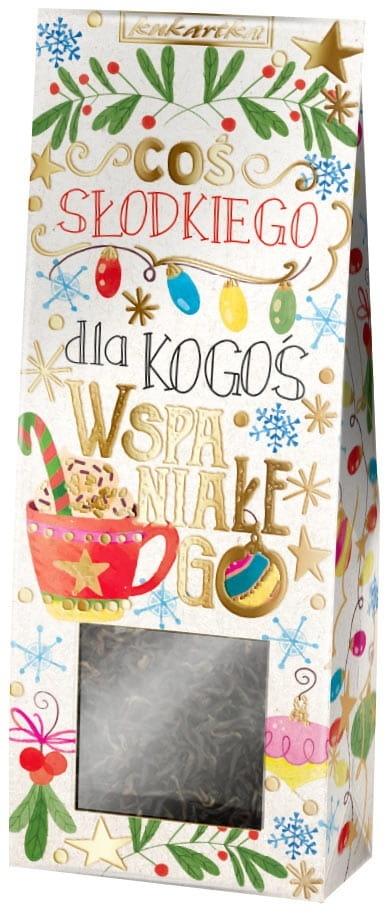 Herbata na prezent ""Boże Narodzenie"" to wspaniały pomysł na drobny świąteczny upominek . 50 gram najwyższej jakości herbaty opakowane jest w piękny, zdobiony metaliczną folią kartonik. Cechy szczególne 1 opakowania: - wyjątkowe kolorowe, opakowanie - super jakość herbata - 50 gr - Wymiary 18,5 x 7 x 4 cm