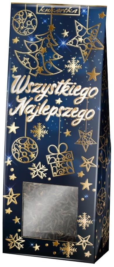 Herbata na prezent ""Boże Narodzenie"" to wspaniały pomysł na drobny świąteczny upominek . 50 gram najwyższej jakości herbaty opakowane jest w piękny, zdobiony metaliczną folią kartonik. Cechy szczególne 1 opakowania: - wyjątkowe kolorowe, opakowanie - super jakość herbata - 50 gr - Wymiary 18,5 x 7 x 4 cm