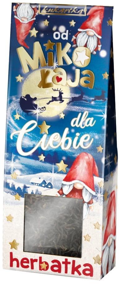 Herbata na prezent ""Boże Narodzenie"" to wspaniały pomysł na drobny świąteczny upominek . 50 gram najwyższej jakości herbaty opakowane jest w piękny, zdobiony metaliczną folią kartonik. Cechy szczególne 1 opakowania: - wyjątkowe kolorowe, opakowanie - super jakość herbata - 50 gr - Wymiary 18,5 x 7 x 4 cm