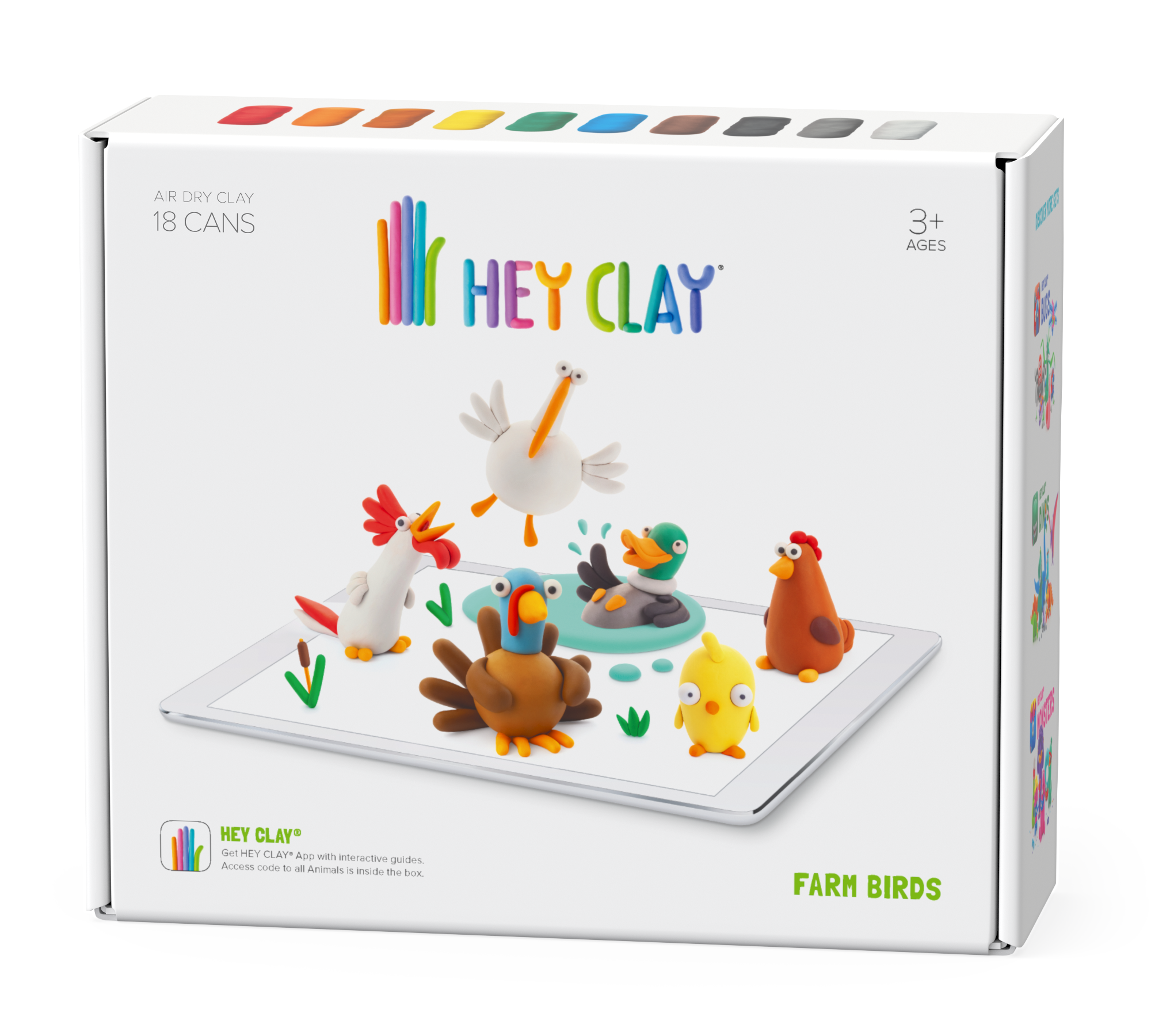 Hey Clay zawiera 5 pojemników z miękką, delikatną i pachnącą masą oraz kod dostępu do aplikacji. Kolory przedstawione są na opakowaniu, pozwalają na stworzenie wybranej figurki. Pewna ilość masy pozostaje, można ją użyć do realizacji własnych kreatywnych pomysłów. Masa wysycha na powietrzu w przeciągu 24 godzin.