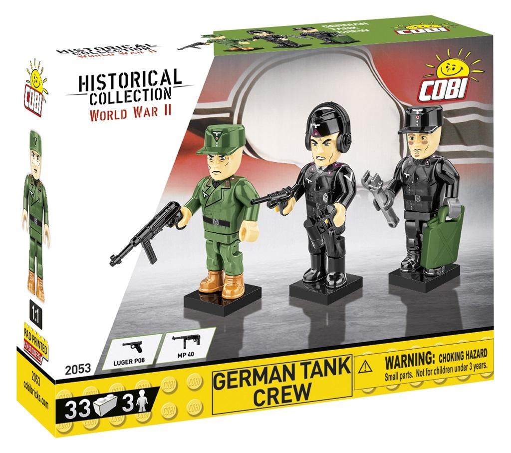 COBI-2053 German Tank Crew Historical Collection: WWII 33 klocki 3 figurki Grupa wiekowa 5+ Zestaw trzech figurek COBI przedstawiający niemieckich żołnierzy z okresu drugiej wojny światowej służących w jednostkach pancernych. Znajdziemy tutaj członka załogi działa pancernego (zielony uniform) oraz czołgistów. Przy pomocy tego zestawu można zacząć kompletować pełne załogi wydawanych przez COBI czołgów i dział samobieżnych. Figurki posiadają akcesoria oraz podstawki. Dzięki różnorodnym zestawom z figurkami COBI szybko zbudujesz swoją klockową armię! Figurki i akcesoria możesz wykorzystać przy budowie scenek i dioram. Sprawdź również inne zestawy z figurkami! 33 wysokiej jakości elementy, wyprodukowane w UE przez firmę z ponad 20-letnią tradycją, spełniają normy bezpieczeństwa dotyczące produktów dla dzieci, w pełni kompatybilne z innymi markami klocków konstrukcyjnych, klocki z nadrukami nie odkształcają się i nie bledną w czasie zabawy czy pod wpływem temperatury, 3 figurki z akcesoriami,