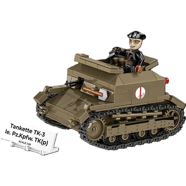 Tankietka TK-3 to lekki polski pojazd opancerzony z okresu międzywojennego, produkowany na licencji brytyjskiego Vickers Carden-Loyd Mk VI. Była to jedna z podstawowych tankietek Wojska Polskiego w latach 30. XX wieku i brała udział w kampanii wrześniowej 1939 roku. Charakterystyka TK-3: Nadwozie i konstrukcja: Dwuosobowa tankietka - załogę stanowił kierowca i strzelec. Napęd na gąsienice, oparty na podwoziu Vickersa. Pancerz: 3-8 mm, odporny na broń strzelecką, ale łatwy do przebicia przez broń przeciwpancerną. Brak wieży obrotowej - broń zamontowana w przedniej płycie kadłuba. Uzbrojenie: Karabin maszynowy wz. 25 Hotchkiss (7,92 mm) (pierwsze wersje) lub wz. 30 Browning. Brak działa przeciwpancernego - co było główną wadą w starciu z czołgami wroga. Napęd i osiągi: Silnik Fiat 122AC o mocy 40 KM. Prędkość maksymalna: 46 km/h (bardzo szybka jak na swoje czasy). Zasięg: ok. 200 km na drodze utwardzonej. Zastosowanie bojowe Rola: rozpoznanie, wsparcie piechoty, działania osłonowe. Użycie: kampania wrześniowa 1939 - walczyły w bitwie nad Bzurą i obronie Warszawy. Zalety: zwrotność, łatwość transportu, niskie zużycie paliwa. Wady: słabe opancerzenie, brak uzbrojenia przeciwpancernego.