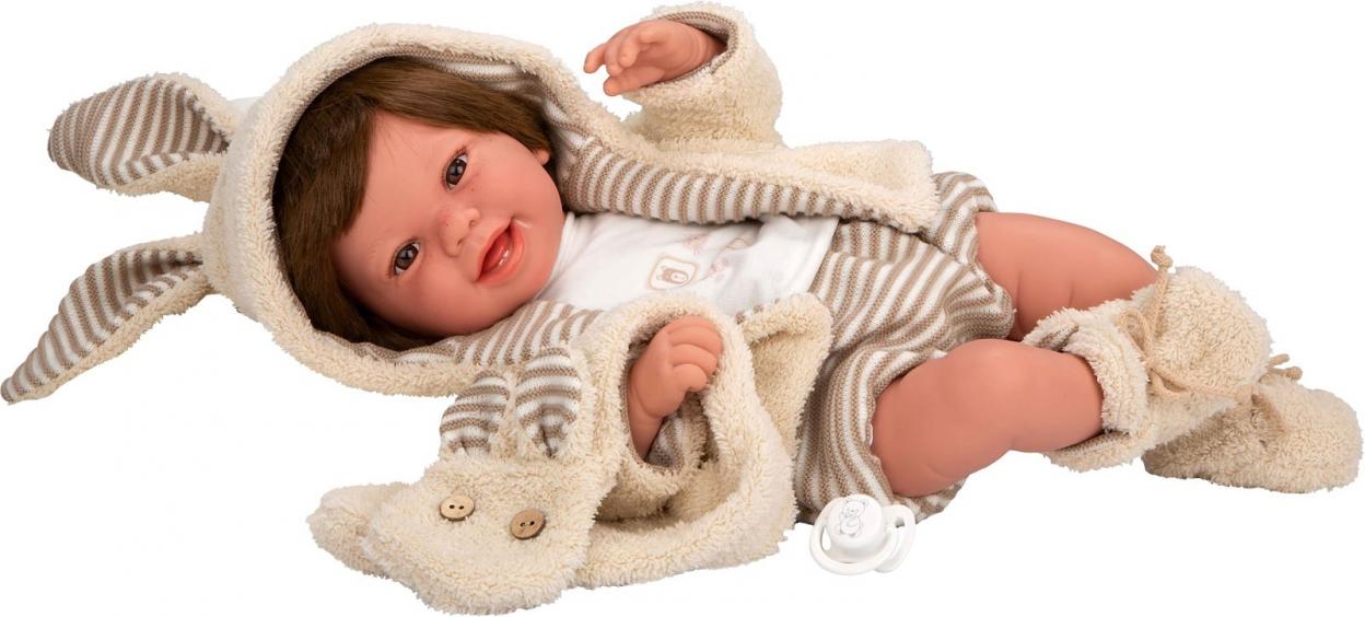 Prześliczna hiszpańska laleczka Munecas Arias została wykonana w 100% w Hiszpanii z winylu i miękkiego materiału. Głowa laleczki, rączki aż do ramion i nóżki do ud - wykonane są z winylu. Korpus - wykonany został z miękkiego materiału. Laleczka dociążona do wagi prawdziwego dziecka. Wysokość produktu: 45 cm. Laleczka zapakowana w ozdobny kartonik.