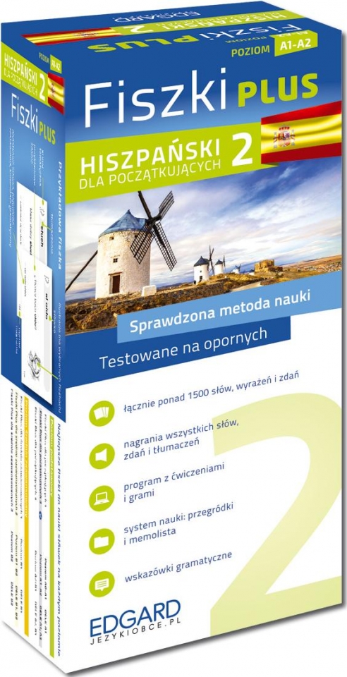 Hiszpański Fiszki PLUS dla początkujących 2 (A1-A2) to pakiet będący częścią rozbudowanego systemu nauki, dzięki któremu szybko i skutecznie nauczysz się słownictwa na każdym poziomie zaawansowania. Każdy zestaw Fiszek PLUS to starannie przygotowany materiał, wysokiej jakości nagrania wymowy wraz z programem komputerowym, memolistą i grami językowymi. Z Fiszkami PLUS nie tylko zapamiętujesz słówka, lecz także poznajesz słownictwo w kontekście, uczysz się nieregularnych form oraz popularnych zwrotów językowych. Od dziś nauka języka stanie się przyjemnością! - Ucz się ponad 1500 słów, wyrażeń i zdań – poznaj użycie gotowe wzorce komunikacyjne, utrwal reguły gramatyczne. - Poznaj prawidłowa wymowę. Słuchaj nagrań wszystkich słówek i zdań oraz ich tłumaczeń - Utrwalaj materiał z ćwiczeniami i grami językowymi dostępnymi w programie (do pobrania) - Ucz się skutecznie dzięki systemowi kolorowych przegródek. Sprawdź na memoliście, które słówka już znasz! - Twórz własne playlisty nagrań wymowy i ucz się mobilnie – w drodze do pracy lub szkoły! Fiszki PLUS to rozbudowana seria fiszek, ułożona w wygodny system, dzięki któremu sam decydujesz, od którego poziomu zacząć naukę. W ramach serii dostępne są wszystkie trzy poziomy zaawansowania – początkujący, średnio zaawansowany i zaawansowany. Aby ułatwić wybór fiszek, każdy z trzech poziomów (podstawowy, średnio zaawansowany i zaawansowany) podzielono na trzy kolejne zestawy: 1, 2, 3 tak byś jak najlepiej dobrał najlepsze dla siebie fiszki i z łatwością mógł zdecydować o wyborze kolejnego zestawu.