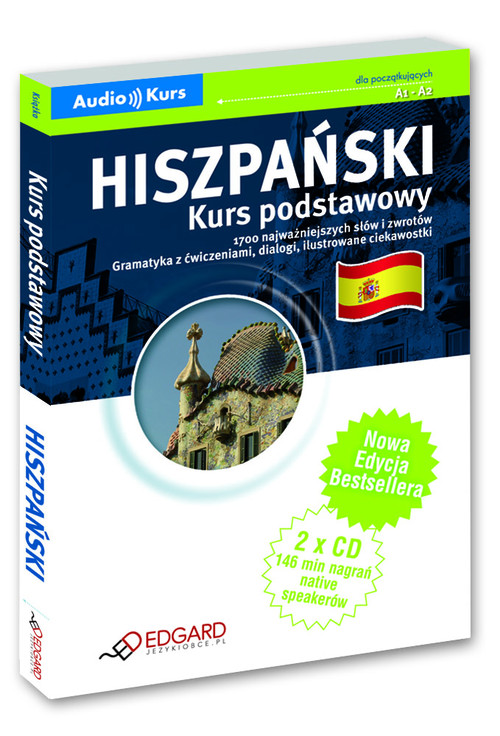 W zestawie znajduje się książka oraz płyta CD nagrana w formacie mp3. Poziom A1-A2.Hiszpański - kurs podstawowy uczy 1700 słów i zwrotów niezbędnych na co dzień - teraz już samodzielnie zapytasz o drogę, zrobisz zakupy, zarezerwujesz pokój i bez problemu porozumiesz się w każdej chwili! Ilustrowane zdjęciami ciekawostki zapoznają Cię z obyczajami oraz kulturą Hiszpanii.Hiszpański - kurs podstawowy 146 minut wysokiej jakości nagrań - rodowici Hiszpanie dialogi i przydatne wyrażenia z tłumaczeniami przystępnie objaśniona gramatyka ćwiczenia z kluczem odpowiedzi ilustrowane ciekawostki sekcje dla ambitnychKsiążka (184 str.) zawiera ciekawe dialogi, interesujące ćwiczenia, zapis wszystkich nagrań, sekcje dla ambitnych, praktyczne wskazówki, ciekawostki m.in. o hiszpańskiej modzie, zwyczaju sjesty, typowym hiszpańskim menu, zamiłowaniu do zabawy, więzach rodzinnych, dumie narodowej czy o barwnej tradycji flamenco. Część gramatyczna zawiera najważniejsze zagadnienia oraz ćwiczenia sprawdzające. Wysokiej jakości nagrania (146 minut) pozwalają osłuchać się z językiem, poznać jego melodię oraz prawidłową wymowę. Wszystkie słówka, zwroty oraz dialogi wraz z tłumaczeniami zostały udźwiękowione przez profesjonalnych lektorów. Uczysz się słówek oraz rozumienia ze słuchu bez konieczności zaglądania do książki.