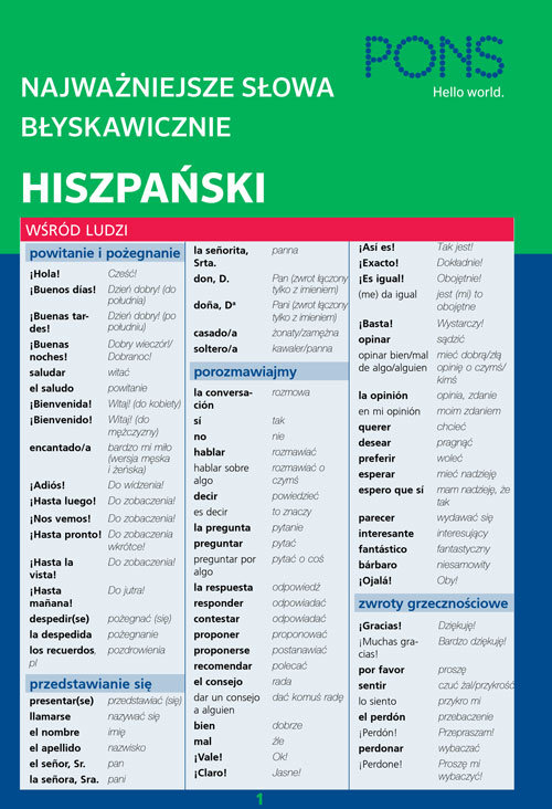 Język w pigułce najważniejsze słowa z języka na 12 laminowanych stronach formatu A5, które możesz wpiąć w segregator lub włożyć do zeszytu lub podręcznika. Przydatne w podróży, przy nauce języka na kursie, szkole lub jako materiał pomocniczy do samodzielniej nauki języka. Zawiera podstawowe słownictwo z 16 obszarów tematycznych od przedstawiania się po liczby i jednostki miar.