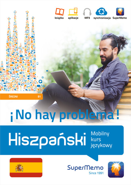 Naucz się hiszpańskiego na poziomie średnim (B1), aby swobodnie formułować spójne wypowiedzi oraz prezentować i wyjaśniać swoje opinie podczas dyskusji. Hiszpański. !No hay problema! Mobilny kurs językowy zapewni Ci najlepsze wsparcie dla intensywnej i skutecznej nauki: poznasz najważniejsze słowa oraz struktury gramatyczne dotyczące życia zawodowego czy zainteresowań i zapamiętasz je na zawsze dzięki metodzie inteligentnych powtórek SuperMemo. Do Twojej dyspozycji oddajemy podręcznik do nauki słownictwa i gramatyki, zawierający dialogi, teksty, komentarze, ćwiczenia i słownik, uzupełniony o: + kurs multimedialny, zawierający prezentacje nowego materiału, 700 nowych słów i wyrażeń, jak również bogaty zestaw różnorodnych ćwiczeń interaktywnych – a wszystko to z nagraniami wykonanymi przez rodowitych lektorów hiszpańskich, dostępny w aplikacjach SuperMemo.com dla systemów Android, iOS oraz Windows PC, + nagrania MP3, ponad 1 godzinę nagrań w wykonaniu hiszpańskich lektorów, do osłuchiwania się ze słownictwem i wymową, np. podczas spaceru, jazdy samochodem lub uprawiania sportu.* SuperMemo.com to między innymi: + oparta o badania naukowe, wielokrotnie nagradzana metoda SuperMemo, pozwalająca zapamiętywać tysiące słów z blisko 100% skutecznością + bogaty słownik pozwalający wyszukiwać i dodawać nowe słowa do nauki + dostęp do wielu kursów językowych + możliwość tworzenia własnych notatek personalizujących treść kursu + możliwość nauki online oraz w aplikacjach przygotowanych na: komputer, tablet oraz smartfon. Uczysz się, jak i gdzie chcesz. Zawsze logujesz się na jedno konto użytkownika, wspólne dla serwisu online oraz programu i aplikacji mobilnych SuperMemo.com, dzięki czemu Twoje postępy w nauce są wszędzie identyczne! * Kupując książkę, otrzymujesz kod dostępu do jej rozszerzeń multimedialnych. Wymagania sprzętowe*: PC: Windows® 7 SP1 PL/EN, Windows® 8 PL/EN, Windows® 10 PL/EN, 2 GB RAM, napęd CD-ROM, ekran 1024 x 768, 240 MB miejsca na dysku, .NET Framework v4.6. Do pobrania kursu i jego aktywacji wymagane jest połączenie z Internetem. Android: smartfon lub tablet z systemem operacyjnym Android 4.1 lub nowszym (aplikacja do pobrania w sklepie Google Play). iOS: iPhone/iPad z systemem operacyjnym iOS 8 lub nowszym (aplikacja do pobrania w sklepie App Store). *Stan na dzień 2016-10-01. Aktualne wymagania dostępne są na stronie supermemo.pl. Instalacja programu i pierwsze uruchomienie programu Podczas instalacji sprawdzana jest wersja dostępnego środowiska .NET Framework. W przypadku jego braku lub wykrycia starszej wersji automatycznie proponowana jest instalacja nowszej wersji. Po zainstalowaniu i uruchomieniu aplikacji SuperMemo.com należy utworzyć nowe konto i zalogować się. Podczas tego procesu niezbędne będzie potwierdzenie adresu e-mail, podanego podczas rejestracji, poprzez kliknięcie linku dostarczonego w mailu wysłanym przez SuperMemo.com na ten adres. Po zalogowaniu się na swoje konto należy wykorzystać kod dostępowy, zawarty w pudełku, klikając w opcję „Zrealizuj kod”. Po pozytywnej weryfikacji kodu na liście kursów użytkownika pojawią się kursy do pobrania. Po pobraniu kursu można rozpocząć naukę. Po aktywacji dostępu do kursu można również pobrać kursy na aplikacje mobilne. www.SuperMemo.com Istnieje również możliwość korzystania z kursu bezpośrednio w wersji serwisu dostępnej online. Wystarczy wejść na stronę www.SuperMemo.com, założyć konto i aktywować dostęp do kursu, wybierając z menu opcję „Zrealizuj kod” i wpisując w pole kod zawarty w pudełku. Po aktywacji dostępu do kursu można również pobrać kurs na aplikacje mobilne.