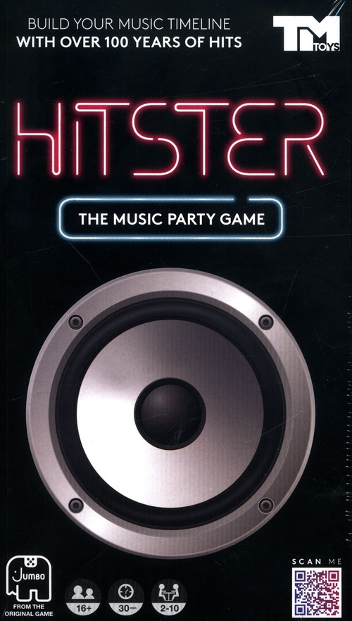 Zorganizuj super imprezę z grą HITSTER! Z ponad 300 największymi hitami ostatnich 100 lat, Hitster to wspaniała gra towarzyska na wieczór pełen śmiechu, śpiewu, tańca i tworzenia cudownych wspomnień oraz…relacji w mediach społecznościowych! • Otwórz opakowanie, zeskanuj kartę za pomocą bezpłatnej aplikacji Hitster, a muzyka zacznie grać automatycznie - pozwól muzyce zrobić resztę, a impreza na pewno będzie udana! • Zgadnij, czy utwór został wydany przed, czy po innych utworach znajdujących się na Twojej muzycznej osi czasu. • Możecie sami ustalić poziom trudności : zgadywać rok w którym powstał utwór, lub rok i wykonawcę albo rok, wykonawcę i tytuł. Możecie też wymieniać utwory i kraść je przeciwnikom używając żetonów Hitster. • Można grać indywidualnie i drużynowo. Na co jeszcze czekasz? Zaproś znajomych do zabawy i dowiedz się, kto zyska tytuł HITSTERA! Nie musisz być muzycznym ekspertem! Bezpłatna aplikacja Hitster odtwarza utwory za pomocą Spotify: • wersja premium tylko odtwarza utwór - wtedy DJ-em może być każdy • wersja podstawowa: odtwarza utwór z widocznym rokiem, tytułem i wykonawcą – wtedy DJ nie może brać udziału w zabawie. Zawartość opakowania: 300 kart z muzycznymi hitami, 37 żetonów Hitster. Gra dla osób powyżej 16. roku życia, liczba graczy: 2-10, rozgrywka trwa ok. 30 min. Gra nie wymaga baterii.