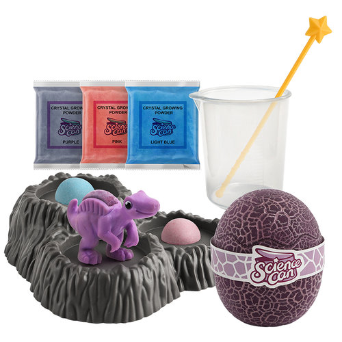 LICENCJA: ScienceCan ILOŚĆ WZORÓW: 1 DOSTĘPNE SERIE: Physical Sciemce WYMIARY PRODUKTU: 21 x 14 x 10 cm WYMIARY OPAKOWANIA: 16 x 15 x 12 cm EFEKTY: zestaw do hodowania kryształów, model: Stegoaur, zestaw składa się z 9 elementów: jajko z dinozaurem, 3 saszetki z proszkiem krystalicznym, podstawka do prezentacji, miarka z mieszadełkiem, instrukcja w języku angielskim