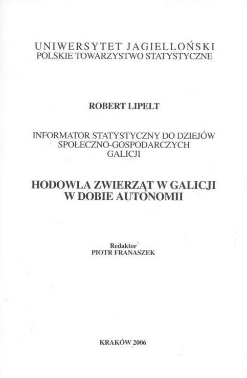 Hodowla zwierząt w Galicji w dobie autonomii Informator statystyczny do dziejów społeczno-gospodarczych Galicji
