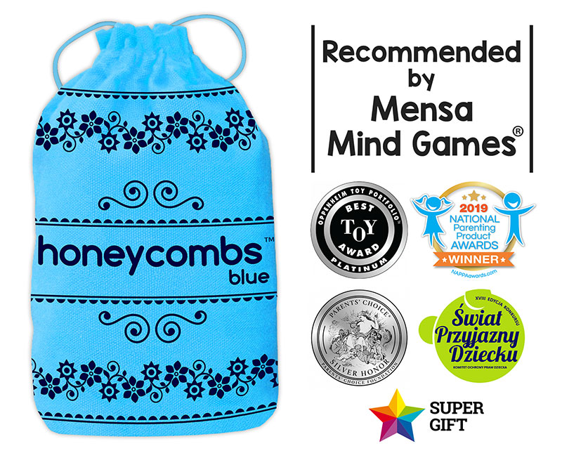 Kultowa gra w nowej odsłonie! Honeycombs Blue to nowa odsłona naszego niesamowitego bestselleru - Honeycombs - plastry miodu. Wersja ta wzorowana jest portugalskimi kafelkami azulejos, znanymi na całym świecie płytkami ceramicznymi, które tworzą przepiękne mozaiki. Honeycombs Blue jest trochę trudniejsza od żółtej wersji Honeycombs, ponieważ wszystkie symbole są w zbliżonej kolorystyce. Zbudujmy pszczeli ul! Pszczoły to bardzo pracowite stworzenia, które od dawien dawna fascynują ludzi, zwłaszcza przyrodników. Tym razem będą potrzebowały naszej pomocy, aby zbudować cały plaster miodu. Gra polega na dopasowywaniu do siebie sześciokątnych płytek zgodnie z umieszczonymi na nich wzorami. W podstawowym wariancie każdy z uczestników otrzymuje równą liczbę płytek i musi ułożyć z nich plaster w jak najkrótszym czasie. Inny wariant polega na spokojniejszej grze turowej, w której układamy jeden wspólny plaster. Płytki gry Honeycombs plastry miodu mogą też posłużyć jako niezwykłe puzzle, dzięki którym stworzymy piękne mozaiki! Zabawa dla całej rodziny Pobawmy się plastrami miodu, ćwicząc spostrzegawczość, zdolność logicznego myślenia i strategię. Jak? Sięgając po najnowszą grę od Piatnika – Honeycombs Blue. Mimo że rozgrywka jest prosta, to daje mnóstwo frajdy. Można grać właściwie wszędzie – wystarczy stół lub podłoga, zabawa nie wymaga wielu przygotowań. Świetna dla dzieci już od 6 roku życia. To ciekawa forma spędzenia czasu dla całej rodziny. Dodatkowo gra jest mocno edukacyjna, skupia uwagę, motywuje do wysiłku intelektualnego. W szczególny sposób aktywizuje mózg dziecka. To proste zasady, duża dynamika, jak i też niezwykłe emocje, towarzyszące przy dopasowywaniu poszczególnych żetonów, tworzących następnie miodowe plastry oraz piękne mozaiki. Tu każdy z uczestników bawi się świetnie, może wykazać się swoją spostrzegawczością i umiejętnością szybkiego myślenia. Ale na czym to polega? W niebieskim płóciennym woreczku znajdują się 52 kafelki z pięknymi grafikami. Gra polega na łączeniu płytek poprzez dopasowywanie tych samych symboli. Im więcej symboli dopasujesz, tym więcej punktów zdobywasz. Jeżeli symbole do siebie nie pasują, płytka nie może być położona. Jedyny wyjątek stanowi puste pole(tzw. mydło), który pełni rolę jokera i pasuje do wszystkich symboli. Do każdej płytki można dopasować inne z sześciu stron. Przebieg gry: • Podziel 52 sześciokątne płytki równo między graczy • Ścigaj się z innymi graczami, starając się jako pierwszy połączyć swoje płytki dopasowując narysowane na nich symbole • Dopasuj jak najwięcej symboli, aby wygrać To tylko jeden, najszybszy z trzech wariantów gry. Możliwa jest także spokojniejsza gra turowa, gdzie gracze po kolei dokładają płytki do wspólnego plastra miodu tworząc piękne mozaiki oraz Wspólne Puzzle. Grę urozmaicają płytki-jokery(tzw. mydło) oraz płytki specjalne. Najwyższa jakość wykonania Już samo opakowanie znacznie różni się od innych. Gra jest spakowana w niebieski płócienny gruby woreczek, ozdobiony pięknymi mozaikami w stylu portugalskich płytek azulejos. W środku znajdziemy 52 sześciokątne płytki, które przypominają plastry miodu i są wykonane z bardzo dobrej jakości grubego plastiku. Dzięki temu płytki są bardzo odporne na wszelkie uszkodzenia i defekty. Każda płytka jest unikalna i posiada zupełnie inny zestaw ilustracji. Polecana przez Mensa Mind Games! Honeycombs Plastry Miodu to logiczna gra rodzinna rekomendowana przez Mensa Mind Games. Gra zdobyła również główną nagrodę w XVIII edycji (2020) konkursu Świat Przyjazny Dziecku w kategorii gry.