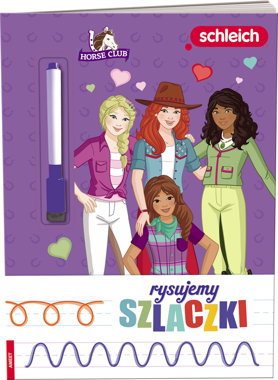 Przyjaciółki z Horse Club zapraszają do krainy szlaczków. W towarzystwie swoich ulubionych bohaterek małe miłośniczki koni będą ćwiczyć kreślenie szlaczków i rysowanie różnorodnych kształtów. Będzie to dla nich nie tylko wspaniała zabawa, ale też doskonały trening umiejętności manualnych przygotowujący do nauki pisania liter i cyfr. Dzięki specjalnym stronom i ścieralnemu mazakowi w każdej chwili dzieci mogą zacząć przygodę ze szlaczkami od nowa.