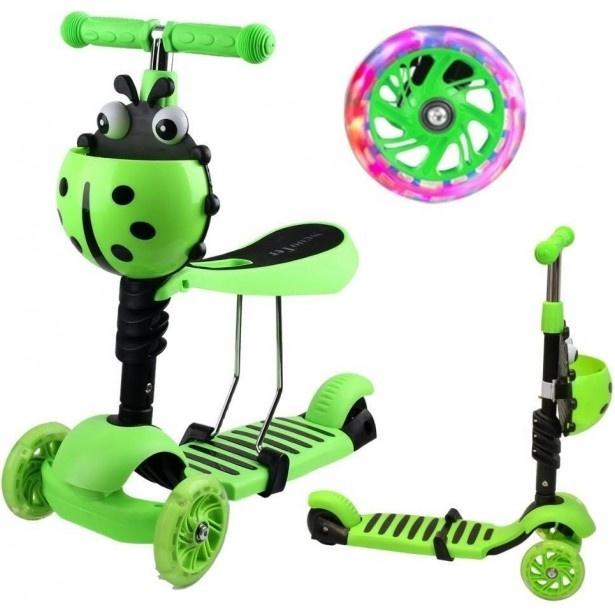 Gdy Twój maluch wyrośnie z wózka, spraw mu hulajnogę na 3 kółkach! Tym sprzętem zapewnisz mu świetną zabawę i dawkę bezpiecznej codziennej aktywności fizycznej. Kieszonka  biedronka pozwoli dziecku na schowanie swoich skarbów lub małej przekąski, a regulowane, zdejmowane siodełko wyściełane miękką powłoką, wygodnie usiąść. Wzmocniony listwą z poliamidu podest hulajnogi wytrzyma obciążenie aż do 50 kg. Wytrzymałe, świecące kółka z diodami LED zapewnią odpowiedni komfort i bezpieczeństwo podczas jazdy, a stalowa kierownica pokryta powłoką galwaniczną zapewni niezwykłą trwałość i odporność na różnego rodzaju uszkodzenia. Dodatkowo wyposażona w trzy stopnie regulacji kierownica pozwoli na dopasowanie wysokości hulajnogi do wzrostu dziecka. Trzy duże koła zapewnią stabilną podporę i równowagę w czasie jazdy. Solidny hamulec nożny pomoże zahamować lub zwolnić Twojemu dziecku w każdej chwili nawet przy większych prędkościach. Unikalny mechanizm balansowego sterowania (delikatne ruchy kierownicą w prawo lub lewo) pozwala w łatwy sposób kontrolować tor jazdy. Solidna konstrukcja i dobrej jakości materiały zapewnią naszej hulajnodze długą trwałość nawet przy codziennym użytkowaniu. Możesz być pewien, że HULAJNOGA BALANSOWA JEŹDZIK 3W1 będzie spełnieniem marzeń Twojego dziecka!