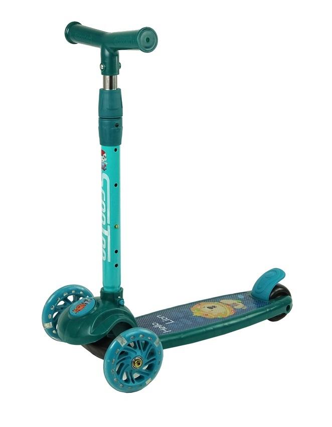Hulajnoga posiada wytrzymałe poliuretanowe koła z hamulcem nożny (dwa z przodu-cienkie, jeden z tyłu). Wystarczy, że dziecko naciśnie na niego stópką, a pojazd zacznie hamować. Amortyzują drgania i świetnie przylegają do podłoża. Rama oraz podstawa wykonane są z aluminium i stali, co gwarantuje wytrzymałość produktu. Super zaleta! Przy zwiększającej prędkości, koła świecą kolorowymi diodami LED.
