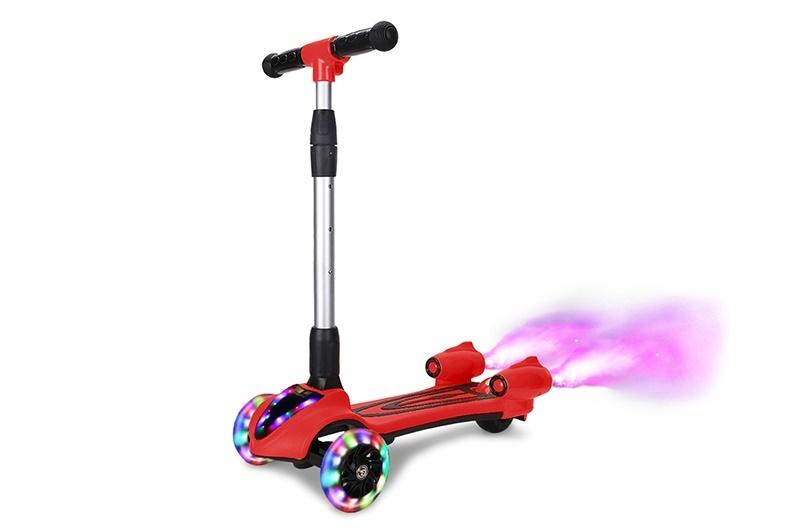 Hulajnoga 3-kołowa z dźwiękiem i światłem, z funkcją pary, ze świecącymi kołami, z akumulatorem do ładowania i gniazdem USB, składana.