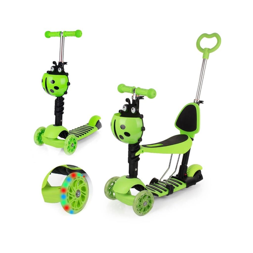 Nasza hulajnoga to produkt o kilku zastosowaniach. Dla najmłodszych, którzy nie posiadają odpowiednich umiejętności do jeżdżenia na hulajnodze w tradycyjny sposób (odpychając się jedną nogą) możemy używać pojazdu w wersji hulajnogi z siodełkiem w formie jeździka. Jest to dobre rozwiązanie dla młodszych dzieci, które zmęczą się tradycyjną jazdą możemy zastosować dołączone siodełko. W tej grupie wiekowej dziecko posiada dodatkowe podparcie pleców w formie miękkiego oparcia. Hulajnoga z pchaczem - dzięki rączce umieszczonej z tyłu jeździka rodzic może cały czas mieć kontrolę nad jazdą dziecka. Takie rozwiązanie może skutecznie zastąpić np. wózek lub rowerek trójkołowy na spacerach z dzieckiem. Dodatkowo pchacz posiada regulację wysokości. Po demontażu oparcia i pchacza urwis może odpychać się od ziemi naprzemiennie nogami i po przez balans ciałem skręcać hulajnogą w prawo lub lewa. Będzie to świetny sposób na wykształcenie u dziecka zmysłu równowagi przydatnego w nauce jazdy np. na rowerze. Taki etap to zamiennik rowerka biegowego.