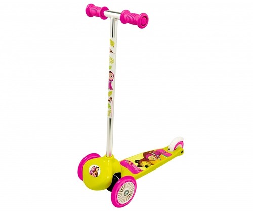 Hulajnoga trójkołowa ozdobiona motywami z bajki Masza i niedźwiedź. Wymiary 56x23x68 cm, maksymalna waga dziecka 20 kg. Dla dzieci w wieku od 3 lat.