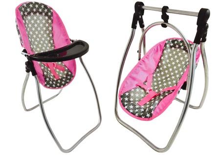 Huśtawka dla Lalek Krzesełko do Karmienia Alice Gwiazdki Szaro-Różowa Opieka nad lalkami przebieranie, karmienie to coś, w co każda mała dziewczynka lubi się bawić. Huśtawka z krzesełkiem do karmienia to jedna z rzeczy, które na pewno urozmaicą zabawę, stanie się ciekawsza i doda realizmu. Krzesełko posiada stabilne nogi wykonane z aluminium. Zabawka ma dwa zastosowania jako huśtawka i krzesełko do karmienia. Szary materiał w białe gwiazdki ma po boku różowe paski. Łączenia wykonane są z plastiku w kolorze czarnym. Cechy takie jak opiekuńczość, troskliwość to tylko niektóre z cech, które będą rozwijać się u dziecka. Nauczy się także jak opiekować się małym bobasem. Aby zmienić huśtawkę na krzesełko wystarczy ściągnąć górny drążek, odpowiednio dopasować siodełko na stelaż i dołożyć stolik. Wymiary huśtawki: 36 cm x 42 cm x 47 cm Wymiary krzesełka: 36 cm x 42 cm x 57 cm Wymiar opakowania: 51 cm x 36,5 cm x 6,5 cm Posiada certyfikat CE, ponadto jest zgodny z normą EN71. Przeznaczony dla dzieci powyżej 3 roku życia.