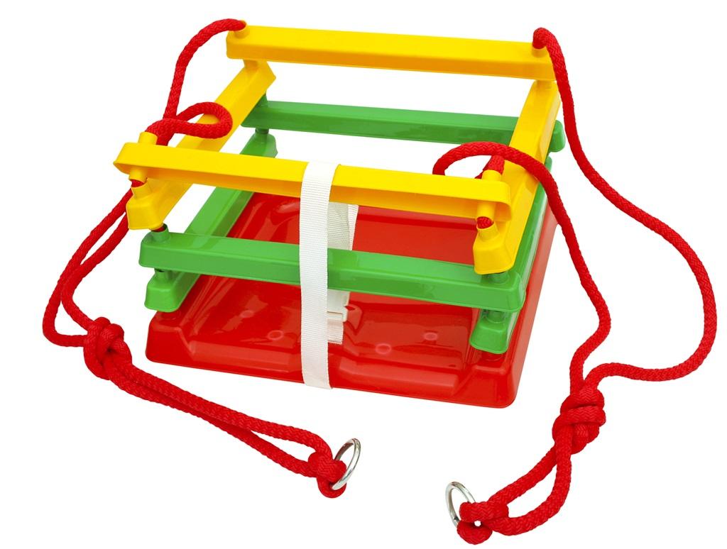 Huśtawka oprócz plastikowego siedziska posiada plastikowe szczebelki zabezpieczające przed wypadnięciem dziecka. Dodatkowo jest wyposażona w ochronne zapięcie, które sprawia, że mogą z niej korzystać dzieci od 18 miesiąca życia. Produkt oferowany jest w różnych wariantach kolorystycznych.