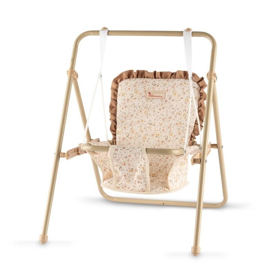 Piękna i funkcjonalna huśtawka cenionej hiszpańskiej marki ASI została zaprojektowana dla lalek o wysokości od 36 do 46cm. Wzbogaca ona popularną kolekcję akcesoriów Teresa. Zachwyca uroczy wzór kwiatuszkowej łąki w modnych odcieniach kawy z mlekiem i beżu. Huśtawka ta jest idealnym dodatkiem uzupełniającym pomysłową zabawę najmłodszych. Pozwala im tworzyć niezapomniane historie i spędzać wyjątkowe i niezapomniane chwile z ulubionymi towarzyszami zabaw: bobasami, lalkami klasycznymi lub maskotkami.