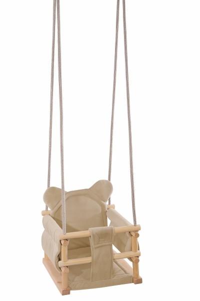 Dzięki zastosowaniu zaokrąglonych szczebelków zabezpieczających, dziecko chronione jest przed wypadnięciem z siedziska oraz otarciami. Huśtawka została wyposażona w grube, wytrzymałe liny. Huśtawka może stanowić piękny dodatek w dziecięcym pokoju lub w ogrodzie. Huśtawka została wyposażona w miękką poduszkę z oparciem przypominającym głowę misia mocowaną w czterech miejscach, co zapobiega przesuwaniu się jej podczas zabawy. Poduszka wykonana jest z wytrzymałego weluru w kolorze różowym oraz szarym, który jest dodatkowo przyjemny w dotyku a swoim kształtem zachwyci każdego malucha!