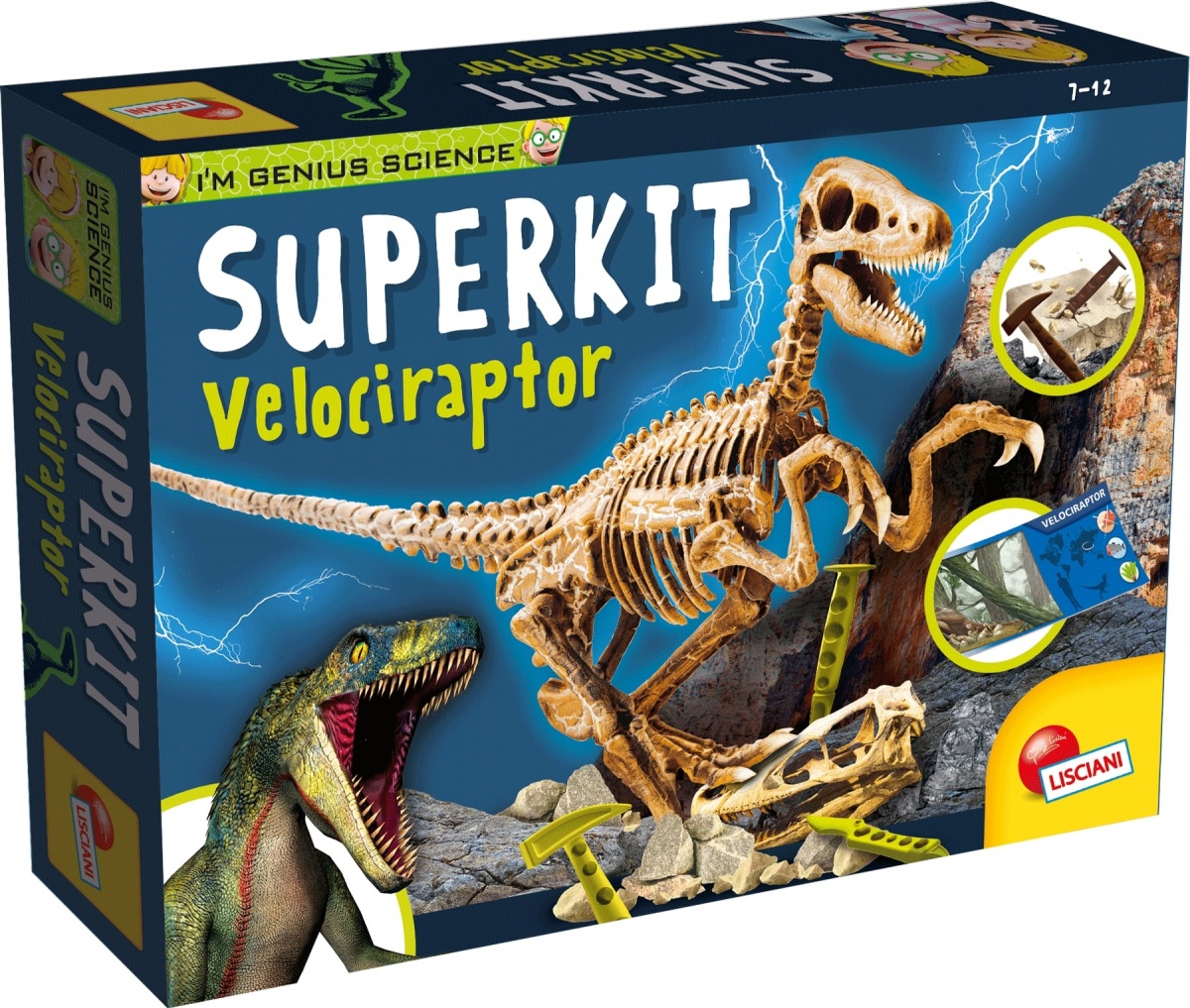 Wejdź do świata dinozaurów! Przed Tobą edukacyjny zestaw, dzięki któremu odkryjesz ich fascynujący świat i poznasz wiele ciekawostek na ich temat. W opakowaniu znajduje się szkielet Velociraptora do złożenia. Jednak nie będzie to tak łatwe jak się wydaje! Wszystkie kości musisz odkopać niczym prawdziwy geolog, używając do tego zestawu narzędzi i bloku znajdującego się w opakowaniu. Dla dzieci w wieku od 7 lat