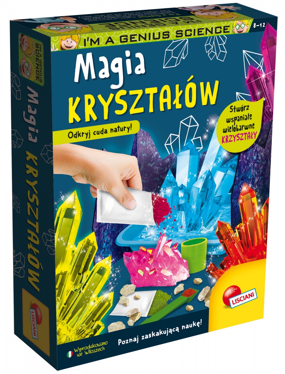 Magia kryształów to świetne laboratorium naukowe zawierające wszystko to, co jest niezbędne do stworzenia wielobarwnych kryształów w sposób łatwy i bezpieczny! Wszystko co należy zrobić to wymieszać reagenty zgodnie z zawartym w zestawie bogato ilustrowanym przewodniku i włożyć misję do groty. Po krótkim czasie zaczną tworzyć się spektakularne klejnoty o fantastycznych kształtach. Ilustrowany dokładnie podręcznik wyjaśni wszystko, co należy zrobić, a także przedstawi różne rodzaje kryształów, które możemy obserwować w przyrodzie i w naszym życiu codziennym. Tworzenie kryształów będzie dla dzieci świetną zabawą!