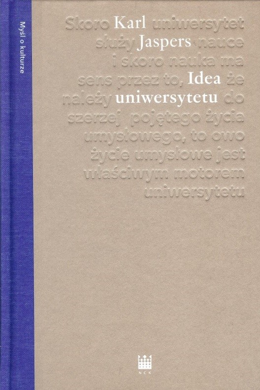 Karl Jaspers (1883–1969), niemiecki filozof i psycholog, jeden z głównych przedstawicieli filozofii egzystencjalnej. Napisana wkrótce po II wojnie światowej Idea uniwersytetu (wyd. drugie zmienione, 1946) jest wyrazem pogłębionej refleksji nad misją uniwersytetów, mającą niewątpliwe znaczenie dla kondycji człowieka i wielu aspektów jego działalności.