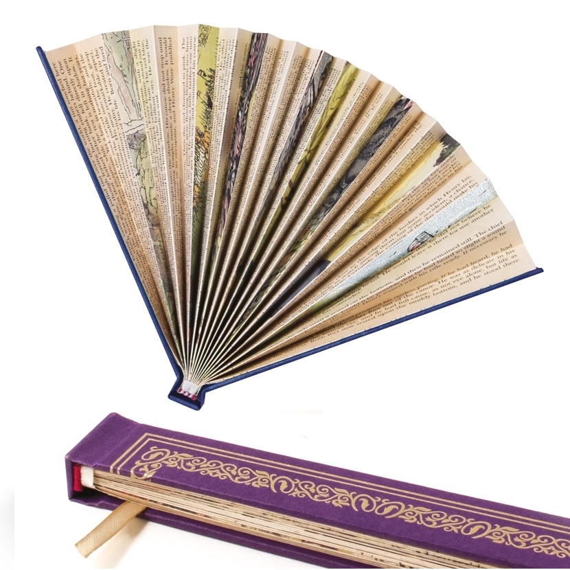 Wyjątkowe książkowe wachlarze doskonale nadają się jako unikatowy prezent. W środku odkryjesz tekst starej książki i ilustracje z epoki, a dodatkowe wykończenie złotą folią uszlachetnia ten produkt.