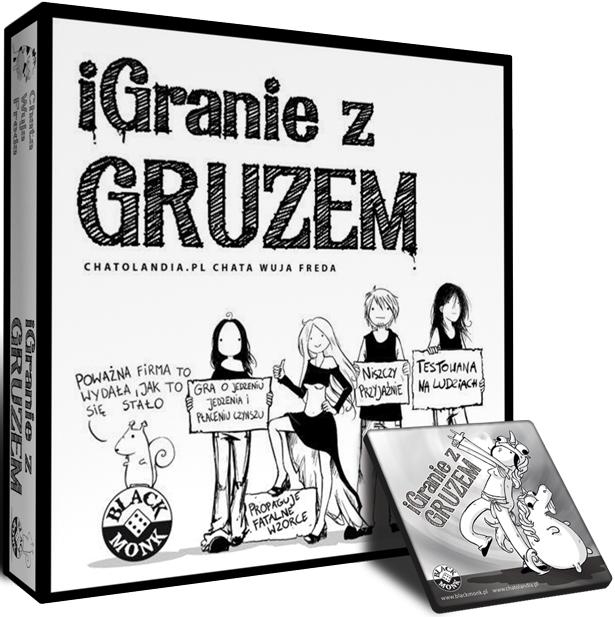 Gra Kobiety Ślimak, autorki popularnego w sieci komiksu Chata Wuja Freda (www.chatolandia.pl). Masz zbyt wielu przyjaciół i nie masz pomysłu na rozstanie się z nimi? Ta planszówka to dobry wybór. Gra zebrała ponad 70 tysięcy złotych w kampanii w serwisie polakpotrafi.pl Kończycie studia i zaczynacie prawdziwe życie. Wpadacie w nieskończone Pętle Pracy i Chillu. Każdy dzień to walka o przetrwanie pośród BIUROKRACJI, DEADLINEÓW czy USIŁOWANIA ŻYCIA W ZWIĄZKU. A to dopiero początek... iGranie to gra rywalizacyjna, w której każdy z graczy próbuje uzbierać jedzenie i pieniądze na spełnienie swoich życiowych marzeń. W trakcie gry, bohaterów spotykają różne nieszczęścia pochodzące z Kart Zdarzeń, które skutecznie utrudnią im osiągnięcie celów. Podróże po nieskończonych pętlach Pracy i Chillu mogą być utrudniane przez wpadanie w mniejsze pętle, symbolizujące pomniejsze trudności życia - jak Biurokracja / Służba Zdrowia czy Zakupy. Biegaj w kółko, zbieraj zapasy i używaj kart Zaradności, aby zniszczyć plany innych graczy - najlepiej tych, którzy mają lepiej od Ciebie. Ale uważaj - życie może Cię dotkliwie pobić i zostawić bez niczego, postaraj się przygotować. Czas trwania gry: 1-2h | Liczba graczy: 2-5 | Wiek 16+ O autorce: Ilona "Kobieta-Ślimak" Myszkowska jest autorką jednego z najbardziej znanych komiksów internetowych w Polsce - Chata Wuja Freda (www.chatolandia.pl). Komiks jest o różnych dziwnych przemyśleniach, refleksjach, całkowitym braku romantyzmu i o życiu bardziej życiowym niż samo życie. Charakterystyczna kreska, przewijający się absurd oraz uderzająca prawdziwość historii stanowią znak rozpoznawczy historii. Pudełko zawiera: 5 figurek bohaterów, 5 kart postaci, 54 karty Chillu, 54 karty Pracy, 54 karty Zaradności, 5 kart pomocy, 38 znaczników Gruzu, 5 znaczników Długu, 5 znaczników Głodu, 28 żetonów Pieniądza, 1 żeton Gruzka, 1 karta Lodówki, 1 karta Efektów Pętli, 1 kość sześciościenna, 1 plansza, 1 instrukcja