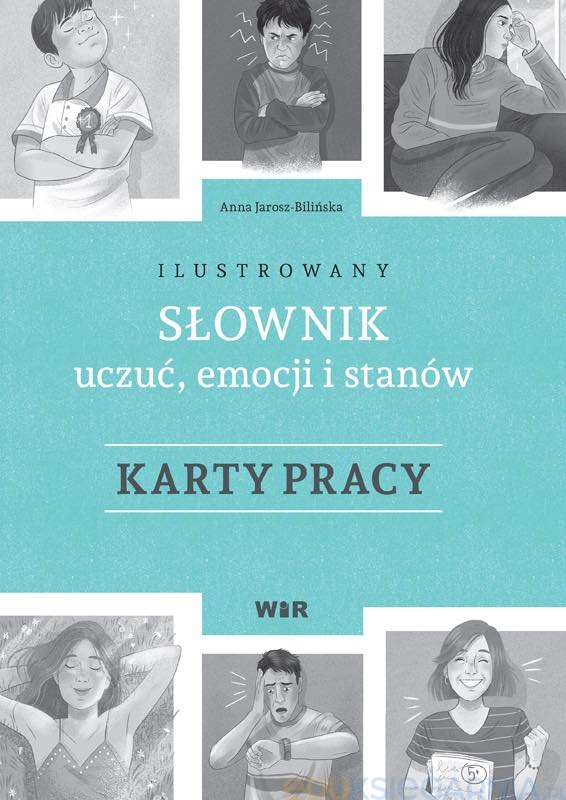 arty pracy to uzupełnienie Ilustrowanego słownika uczuć, emocji i stanówIch celem jest sprawdzenie poziomu zrozumienia słownictwa związanego z emocjami, a także uporządkowanie wiedzy o nich. Różnorodne ćwiczenia, w tym zadania otwarte, zachęcają do refleksji i budowania wypowiedzi z użyciem poznanych słów.