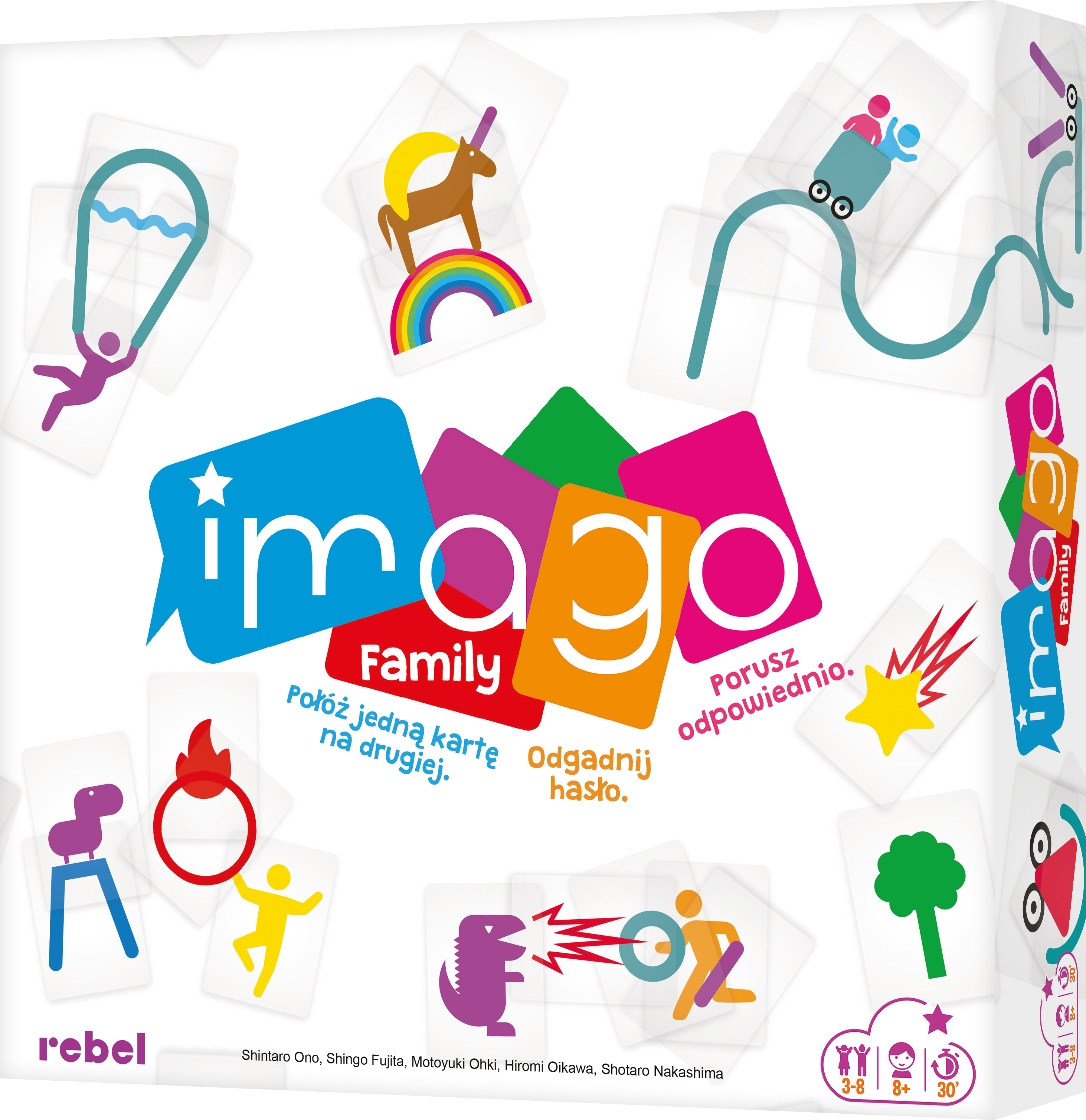 Nietypowe kalambury dla całej rodziny! Wspieraj kreatywność i rozwój wyobraźni dzięki zupełnie nowej odsłonie popularnej gry kalamburowej. Imago Family to wyjątkowa rozrywka dla całej rodziny. Podczas zabawy naszym zadaniem jest pokazywanie oraz odgadywanie wylosowanych haseł. Jednak informacje będziemy przekazywali bez mówienia, gestów i rysowania! Na czym to polega? Gracz, który będzie przekazywał informację pozostałym, wybiera jedną z dostępnych kart Enigm. Na początku czyta głośno wskazówkę znajdującą się na jej grzbiecie, a następnie wybiera jedno z haseł znajdujących się na drugiej stronie. Aby przekazać wybrane słowo, będziemy korzystali z przezroczystych kart z grafikami. Zawierają one proste, kolorowe symbole, które musimy połączyć w taki sposób, by pozostali gracze domyślili się, o co nam chodzi. Karty możemy dowolnie łączyć nakładając jedne na drugie, a także poruszając nimi. Gdy na stole pojawi się druga karta podpowiedzi, gracze mogą odgadywać. Osoba, która jako pierwsza poda poprawne hasło, a także pokazujący, otrzymują po jednym punkcie.