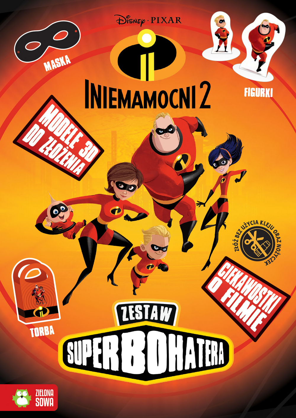 Każdy superbohater potrzebuje odpowiednich gadżetów! Aby je wykonać, wystarczy trochę wyobraźni i… ten zestaw! Poznaj wiele ciekawostek o niesamowitym świecie Twoich ulubionych bohaterów z filmu Iniemamocni 2, a następnie samodzielnie, bez użycia kleju i nożyczek, złóż superbohaterską maskę czy pudełko na drobiazgi. Baw się świetnie - to takie proste!