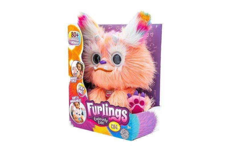 Dawno, dawno temu, a może i całkiem niedawno, za siedmioma lasami i dolinami żyły sobie Niesforne Futrzaki poznaj Furlings! Dziś przedstawimy Cleo - uroczą i rogatą istotkę. Cleo ma brzoskwiniowe futerko z kolorowymii akcentami oraz magiczne oczy, które zmieniają wyraz. Potrafi wydawać ponad 80 różnych dźwięków i wyrażać emocje za pomocą oczu. Cleo reaguje na przytulanie, mówiąc "Luv!", a gdy jest zaskoczony, usłyszysz "Ah Choo!". Potrafi również delikatnie warknąć "Grrrr!" w razie niezadowolenia. Idealny dla dzieci od 3 lat, Cleo rozwija empatię i zdolności komunikacyjne, dostarczając mnóstwo radości i ciepła! Pokochaj tego Niesfornego Futrzaka!